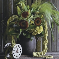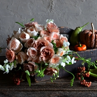 緑色のいがに包まれた栗が花市場に出てくると秋の気配を感じます。花々は落ち着いた色合いのものが多くなり、紅葉した枝ものが出回り本格的な秋へ移り変わります。秋の花たちが静かに語りかけてきます。