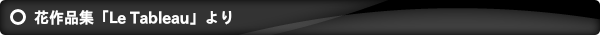 こちらのギャラリーでは、花作品集「Le Tableau」や2018年11月に出版された「Le Duetto」の作品をはじめ、まるで物語と時間を封じ込めたようなポエティックな花たちを紹介します。